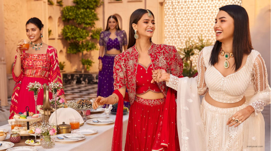 - Best for: Engagement ceremonies or a Mehendi function where you want a fun, youthful look.
