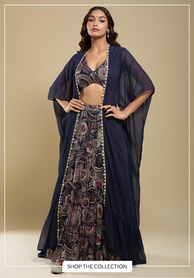 Ready to make a style statement this season? Explore Aza Fashions to discover our curated collection of trendy Indo-Western lehengas. From top designer labels to contemporary favorites, find the perfect fusion ensemble that will turn heads at every occasion.
