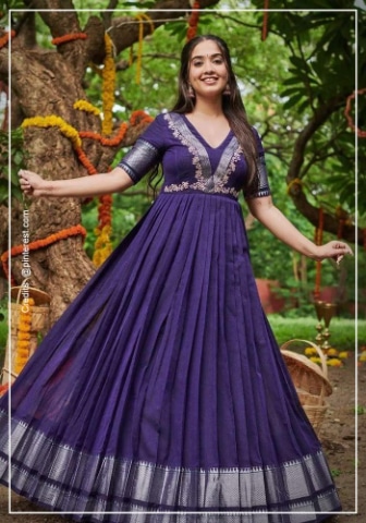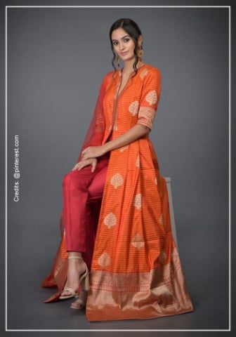 - Rich Fabrics: Heavy silks like Benarasi, Kanjivaram, or Paithani are luxurious and best suited for special occasion wear. You can turn them into stunning gowns, elegant Anarkalis, or formal dresses. Be mindful that these can be harder to sew due to their thickness.