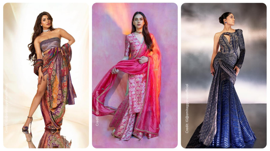 - Large Prints: Sarees with bold, large prints or motifs are great for simple silhouettes like a maxi or a shift dress, where the pattern can be the main feature.