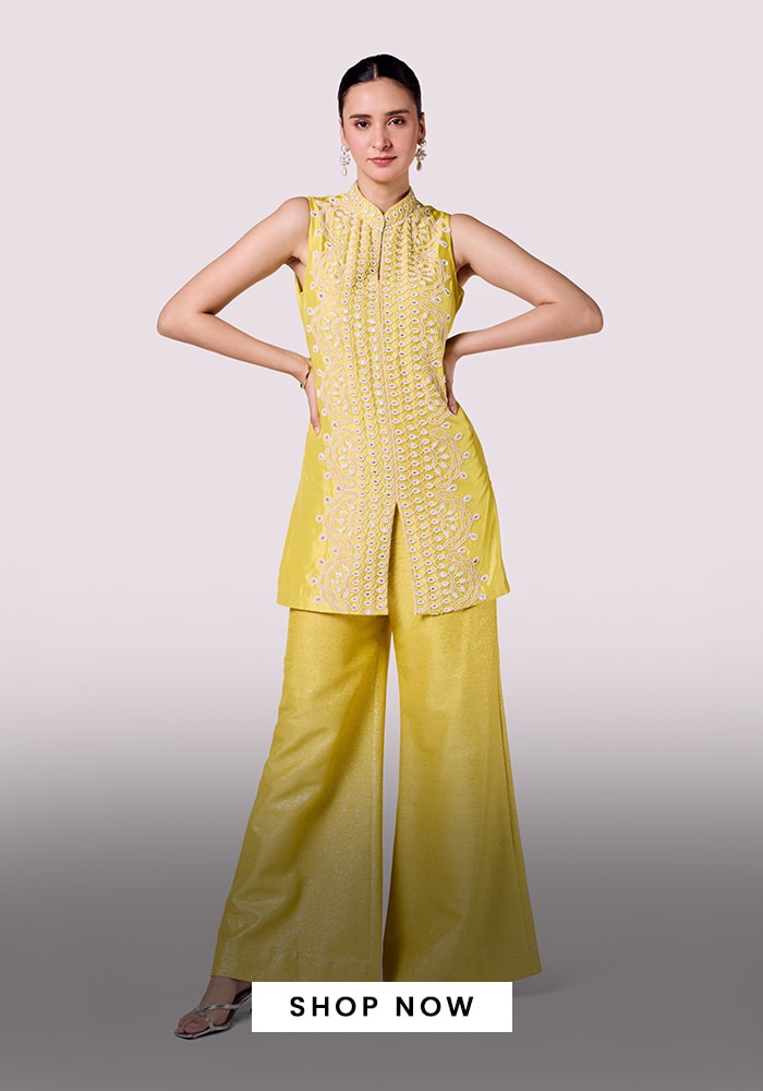 Kurta palazzos create a sleek, refined, and coordinated look that works for both work and weekends. For an added touch of sophistication, consider accessorising your outfit with bold footwear and statement jewellery.