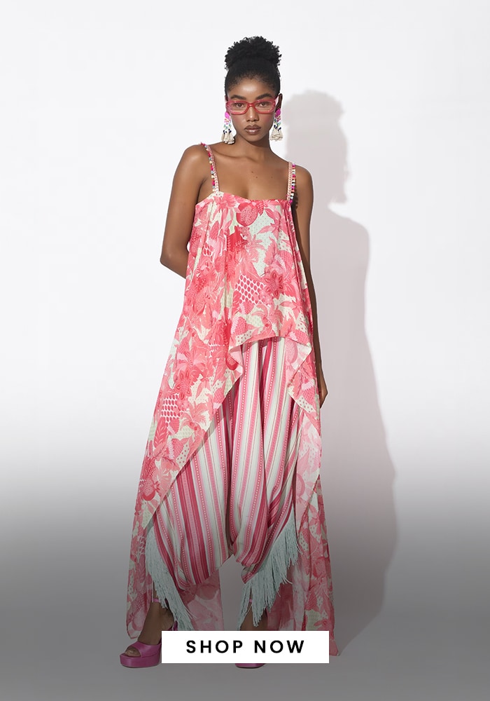 A classic combo, a kurta and dhoti pants add an instant elegance and drama to your look. Deeply rooted in tradition but having a flair of modern styling, this silhouette is great for edgy everyday looks, pre-wedding festivities, and other celebrations.