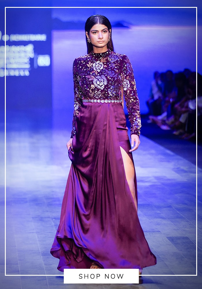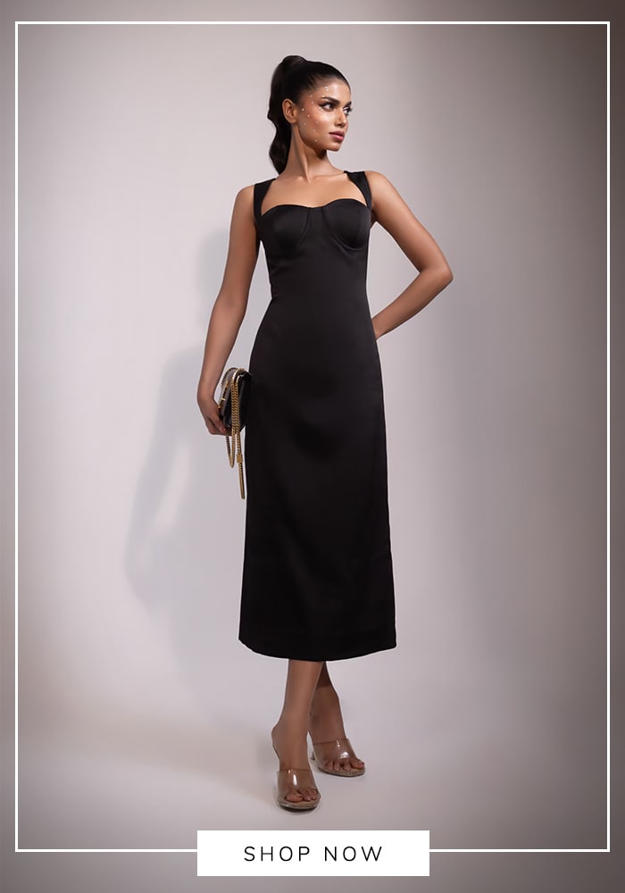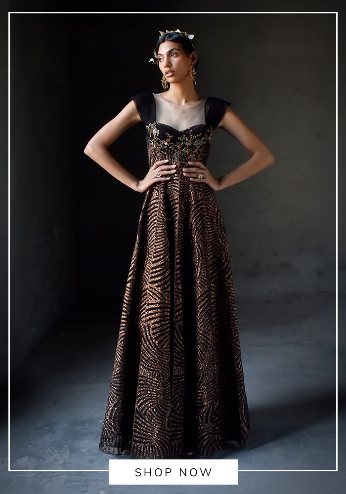 Every wardrobe needs an LBD, and Aza Fashions offers stunning modern interpretations. Filter your search for black evening gowns with sleek, structured cuts from contemporary labels like Rohit Gandhi + Rahul Khanna to find a piece that screams modern-day Holly Golightly.