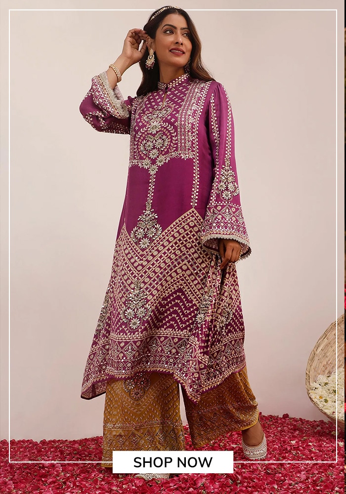 الأقمشة الغنية والتطريزات الدقيقة تنسدل بأناقة لتقدّم إطلالة محتشمة وفاخرة، مثالية للتجمعات العائلية. ارتداء قطعة من ريتو كومار هو تعبير عن تقدير الثقافة والفخامة المستدامة.