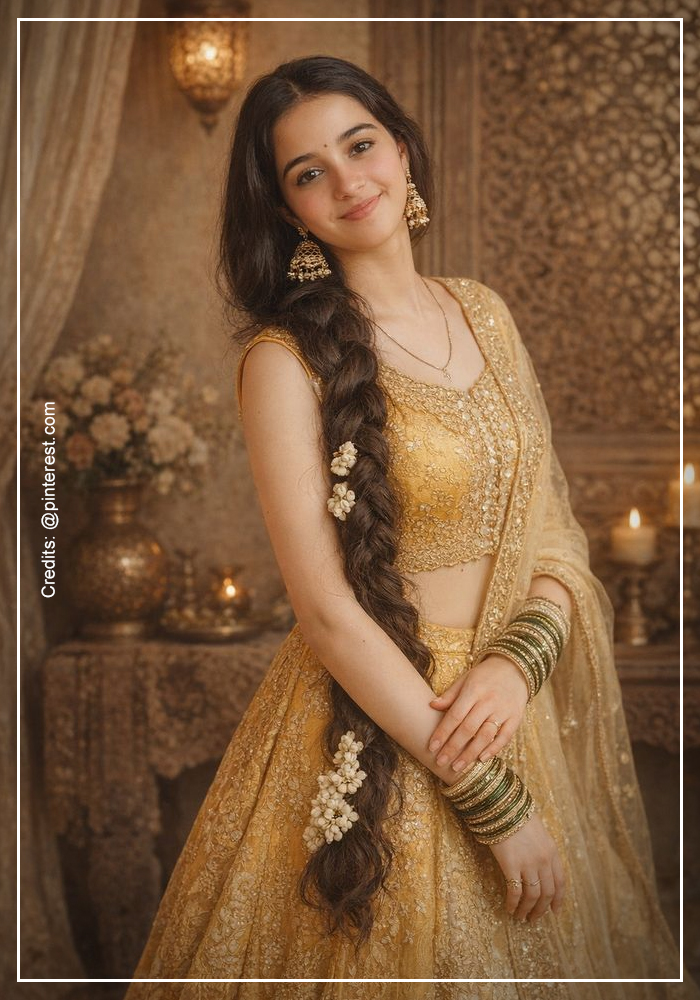 - Styling Tip: Add fresh jasmine flowers (gajra) for a traditional touch, or use pearl-studded pins for a contemporary vibe.