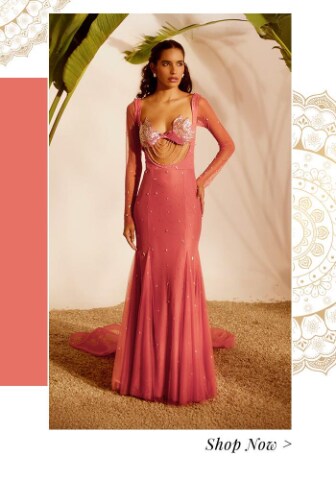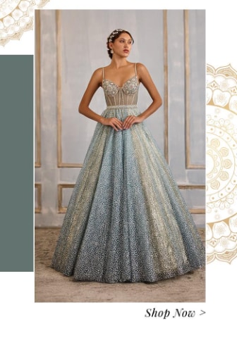The Sangeet night is your moment to dazzle. This is the event for glamour, sparkle, and high energy fashion. Think cocktail ready Indian gowns that are made for the dance floor.