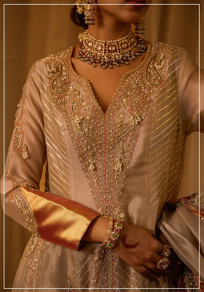 Zari has long been an integral part of women's closet, weaving its way through generations of elegance and traditions. From timeless kanjeevarams and banarasi silk sarees to contemporary favorites like tissue and organza sarees, intricate zari craftmanship continues to elevate Indian bridal and festive wear through its radiance.