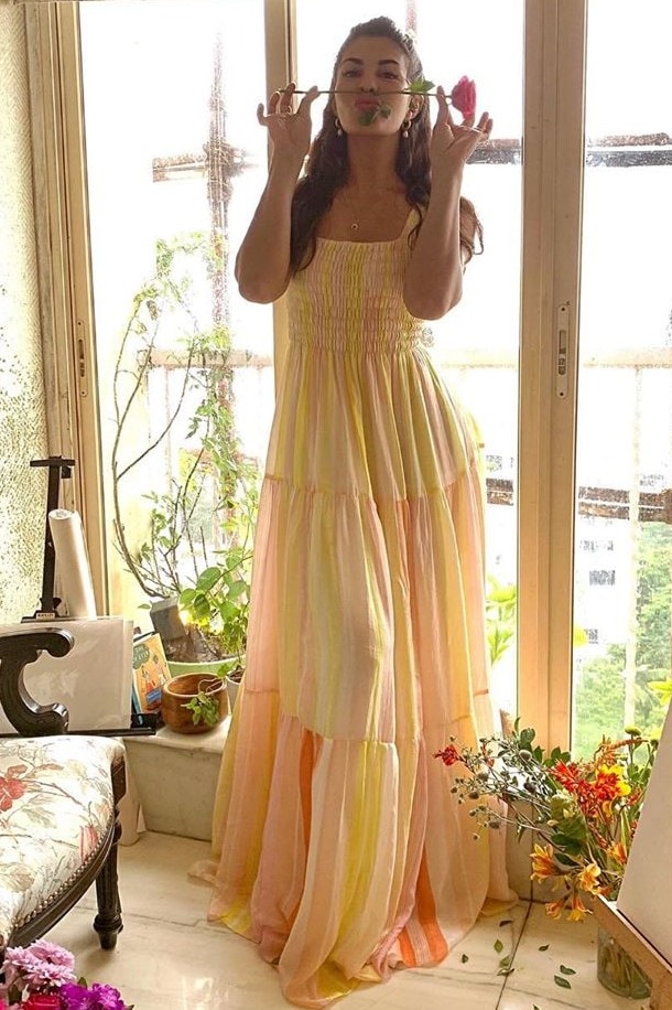 Loved Jacqueline Fernandez's maxi dress by Vedika M? Let us know in the comments below.
