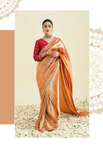 In this style, the saree is wrapped around the body in such a way that it forms a pair of trousers. A portion of the saree is pulled between the legs and tucked in at the back of the waist. This creates a functional and striking look that is both traditional and bold. Unlike other saree styles, the traditional Nauvari drape does not require a petticoat, as the fabric itself provides full coverage.