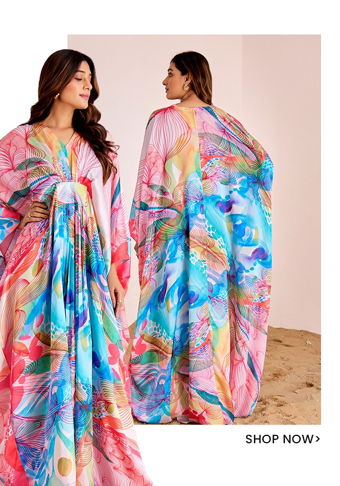 While the Kareena Kapoor kaftan trend might be making waves right now; kaftans have always stayed and slayed. To be precise indian kaftan are one timeless trend that never fails to stay relevant amongst women. To stay on par with the latest fashion, Aza Fashions offers you an exclusive collection of designer Kaftans. From printed to embroidered and embellished outfits and from wedding to resort wear, the options are endless. Dive down to embark on a timeless odyssey featuring stunning kaftans offered by renowned designers.