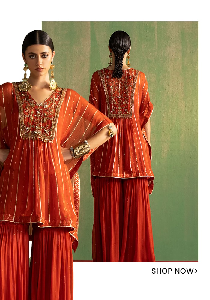 Looking for a feisty and vibrant shararas to flaunt at the wedding? Or seeking a chic kaftan dress for your next resort vacay? It’s time to let your worries fleet away as Aza brings you the latest styles of Kaftans. Curated by some of the best designers in ethnic and contemporary couture, shop online now!
