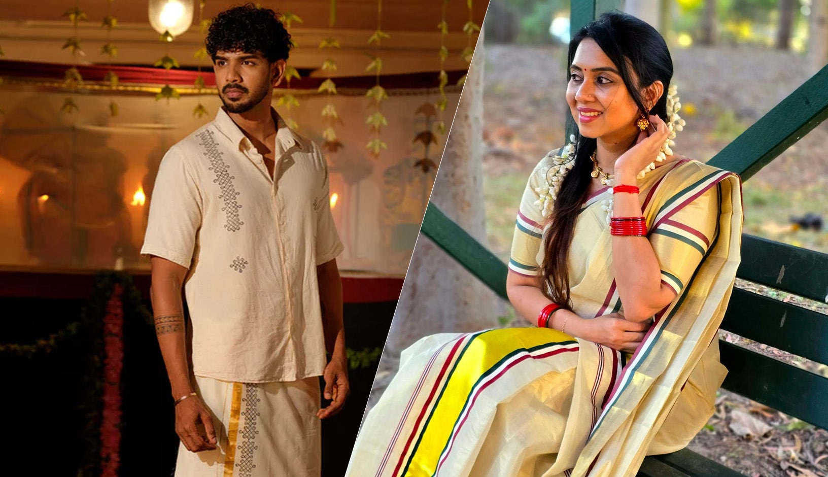 The Kasavu is the official festive wear of Kerala. You will see both men and women proudly wearing it during: