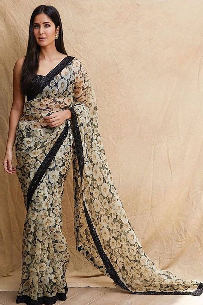 One tried-and-true trend that we can't get enough and is almost everyone's favourite is florals. Regardless of the season, flower motifs are present in every woman's closet (whether you like your flowers printed or embroidered is another conversation). Even Katrina Kaif loves them. She is often seen in these feminine prints that add a jolt of fresh to our Instagram feed. One such outfit (among many others), that we are particularly crushing on is this organza saree from Sabyasachi that has taken everyone's breath away by its sheer (pun intended) simplicity. Since intimate weddings have become the need of the hour, it has become imperative to dress aptly. Chic, refined styles have taken over the extravagant silhouettes, making this style a must-have in a millennial woman's sartorial wardrobe. Katrina's black and white daisy print organza saree is understated-yet-statement-making and perfect for those who resonate with the less-is-more logic. It is equal parts classy and sophisticated, and the black sequin blouse definitely adds a new dimension to the look. We love how the sequin borders of the saree are in tandem with the blouse. Exquisite, isn't it? As the dainty floral saree is effortless, there's room for multiple pair-ups. You can recreate Katrina's all-minimal look and opt for stud earrings with a bindi, or pick traditional pieces like a kundan chandbaalis for a sophisticated look. Regardless of your jewellery picks, keep your makeup uber-simple and opt for a nude lipstick. If you too are looking for a minimal outfit for your BFF's wedding festivities, take a look at this Katrina Kaif's Sabyasachi saree which is available on Aza. Loved Katrina Kaif's Sabyasachi saree? Let us know in the comments below.