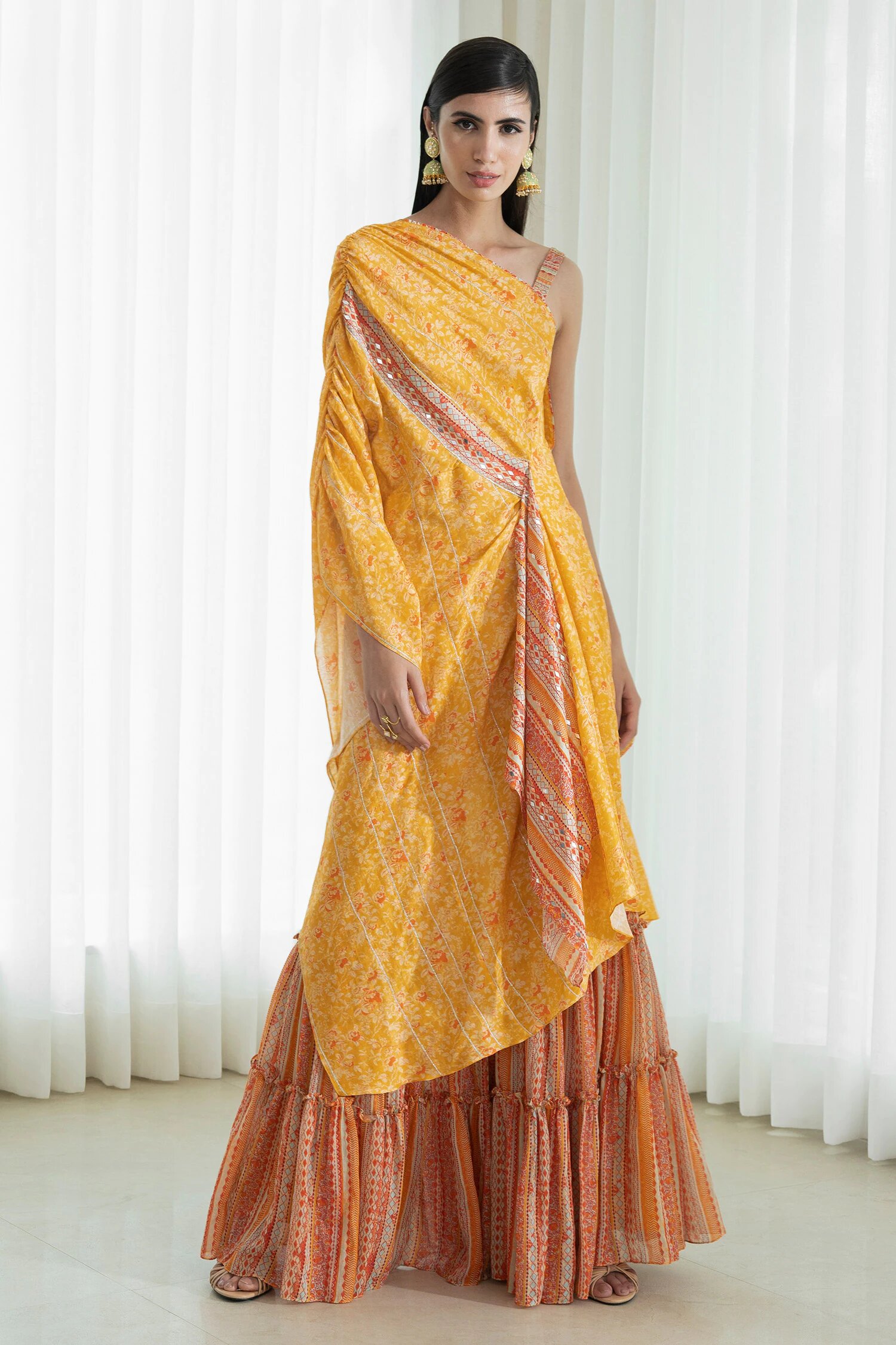 Mandira Wirk's Adeena consists of an array of styles that are surely going to leave you swooning over the colours and the detailing of the looks. From kaftans to sharara sets to lehengas and pre-draped sarees, the style of a modern Indian woman has been efficiently described through these ensembles.