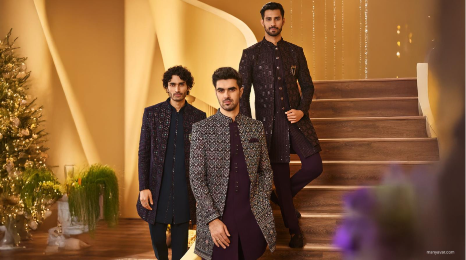 Look for designs with interesting drapes or cuts. A shorter sherwani jacket paired with slim trousers is a popular silhouette. Don't be afraid of subtle embroidery or textured fabrics. This style pairs well with loafers or mojaris, depending on the specific design.