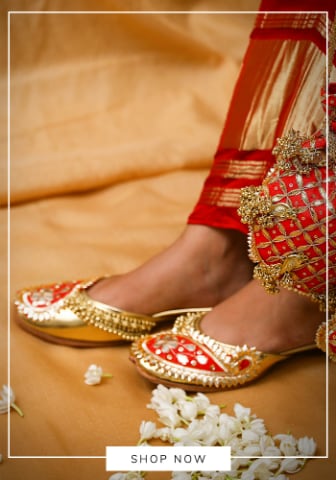 For a traditional touch, you can't go wrong with a pair of juttis (or khussas). These handcrafted leather flats are comfortable and come in endless designs.