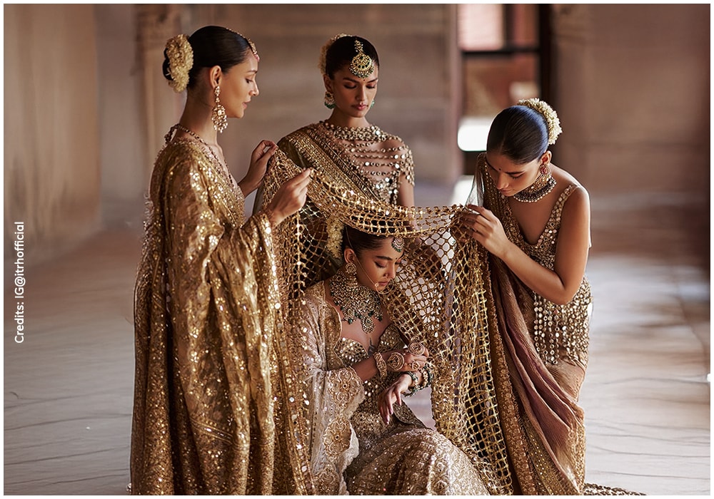 - Seema Gujral: Her bridal collections offer a blend of subtle elegance and dazzling mirror accents, making them perfect for modern brides who want to keep things classic but with a twist.