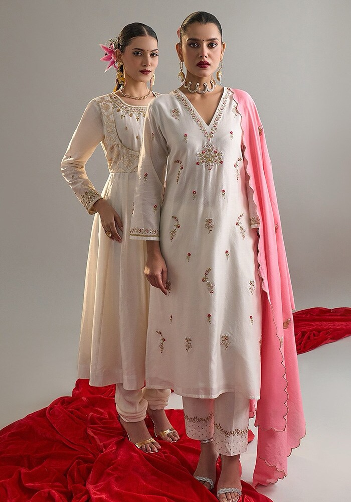 Naaz by Anantaa by Roohi stands as a tribute to the timeless artistry of Indian embroidery. Each piece tells a story, whether it’s the delicate threadwork that traces the outlines of blooming florals or the subtle sequins that catch light with every movement. You'll find an easy old-world charm in the details, yet silhouettes remain refreshingly modern.