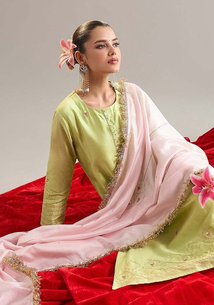 With a refreshing palette of soft hues featuring lime green, butter yellow, and beyond, Naaz by Anantaa by Roohi sets a radiant tone for the festive season ahead. Each ensemble blooms with intricate floral embroidery, symbolizing a graceful blend of tradition and new beginnings. Elevated with playful tassels, delicate sequins, and glistening gold accents, the collection is designed to bring just the right hint of sparkle to your intimate yet joyous celebrations.