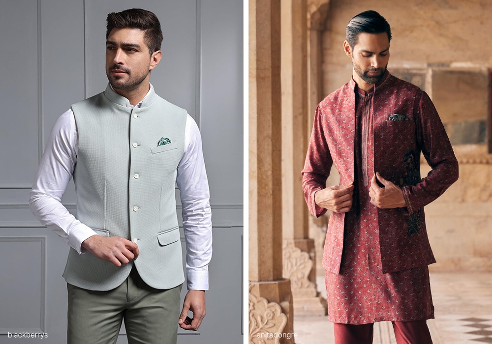 For pre-wedding functions like the Mehendi or Engagement, a Nehru jacket is often better because it looks more "groom-like" and traditional. For the reception, a three-piece suit with a waistcoat is a sharp, modern choice.What is an "Indian Waistcoat"?