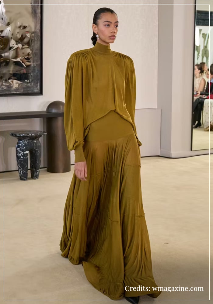 Proenza Schouler impressed with architectural tailoring and fluid silhouettes under fresh creative direction. The balance between structure and softness felt deliberate and confident. A cinched-waist trench in molten olive had editors mentally placing pre-orders.