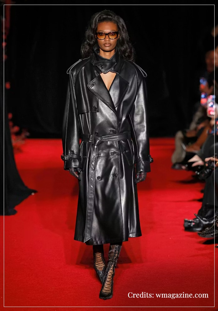 Khaite explored illusion and authenticity, inspired by F for Fake by Orson Welles. The atmosphere was moody and cinematic, echoing noir sensuality. Sculpted leather and sharp tailoring defined a cool, controlled power aesthetic.