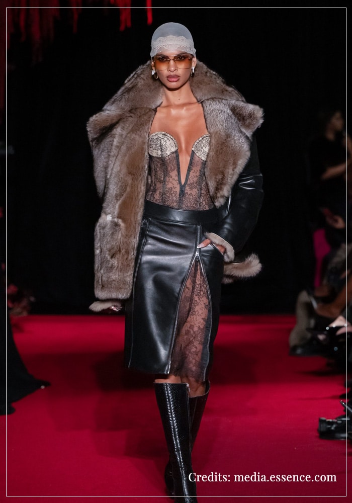 Ralph Lauren delivered rugged American luxury with layered leathers and plush knits that felt both polished and lived-in. Anne Hathaway and Anna Wintour made it the hottest ticket, with Gigi Hadid commanding the runway. A shearling coat styled with metallic cowboy boots defined modern Western glamour.