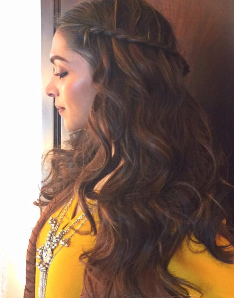 If you want to keep your braid and let your mane flow then this hairdo is a great option for you. The waterfall braid on its own is a very romantic and dreamy hairdo and when paired with wavy curls, it looks even more mesmerizing. Even though this hairstyle works well with any outfit it looks even more gorgeous when paired with a lehenga.