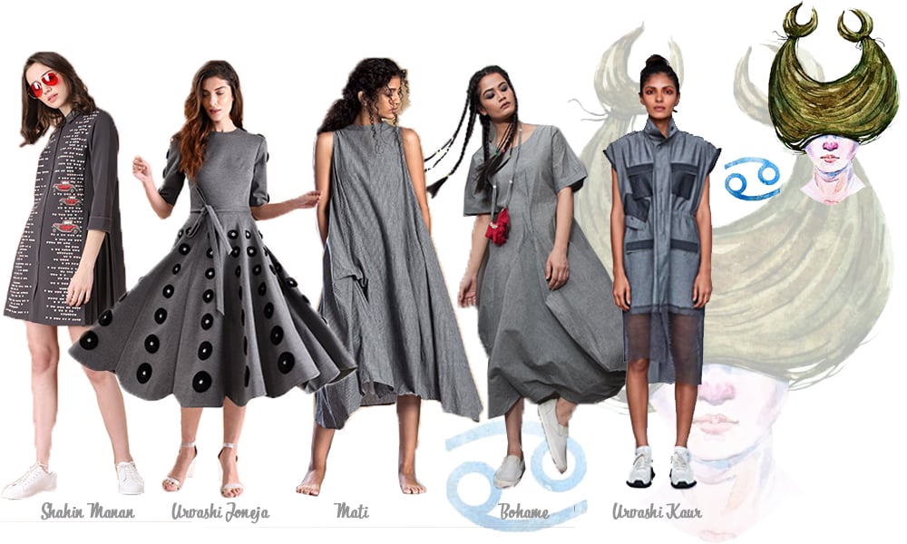 Sheath dress by Shahin Manan; Flared dress by Urvashi Joneja; Asymmetric dress by Mati; Baloon dress by Bohame; Jacket style dress by Urvashi Kaur