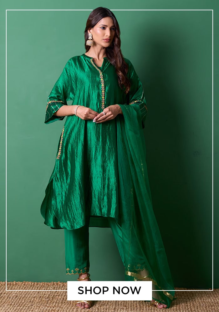 3. Priti Prashant Emerald Green Silk Organza Radiance Kurta Set
