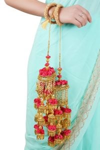 Seen mostly in North Indian weddings, the kaleere are a bunch of delicate gold ornaments that are tied to the chooda, symbolic of the relationship she shares with her bridesmaids and family, that she's taking along with her into her new life. Typically, the mother or the bridesmaids tie the kaleere to the bride's chooda, which she shakes over the heads of her unmarried friends or relatives, as a sign of passing her good fortune to these girls. Fun, right?