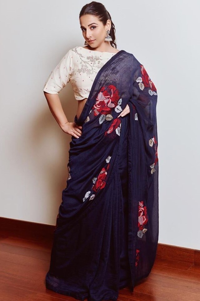 Style Breakdown - Vidya Balan sported yet another saree beautifully, especially with these silver oxidized statement jhumkas.