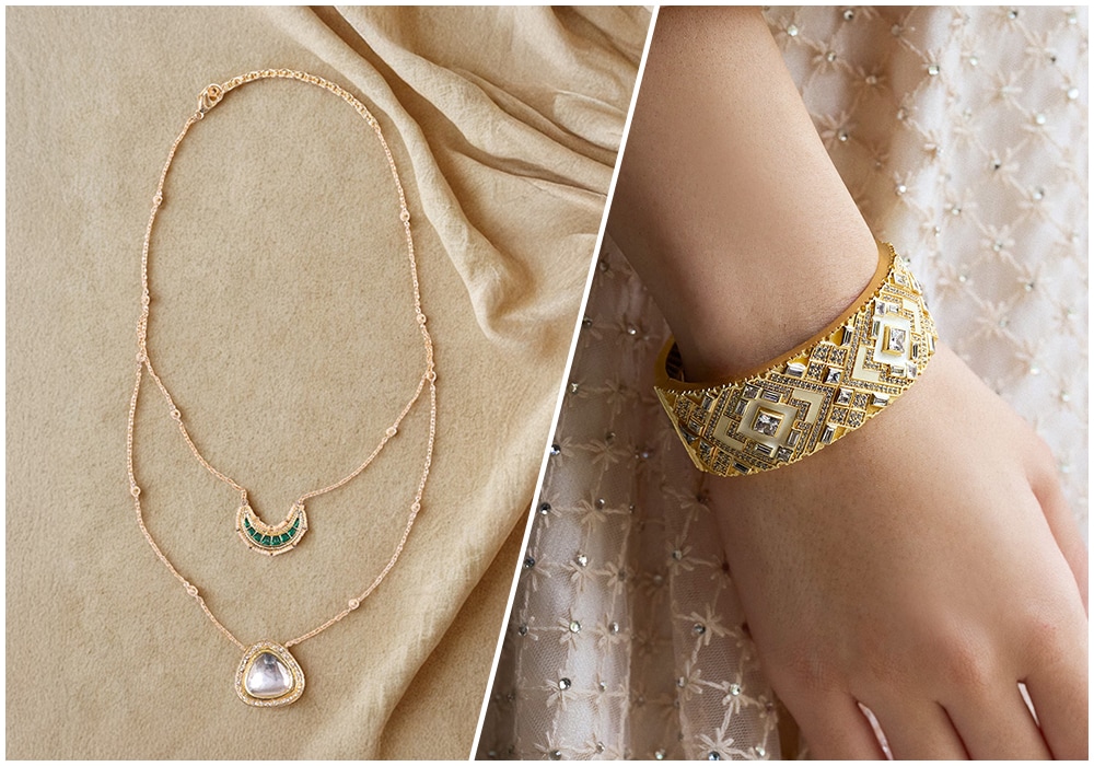 - Long Necklaces: For high-neck outfits like Kaftans, long pendant necklaces or layered chains break up the fabric and add a touch of sparkle.