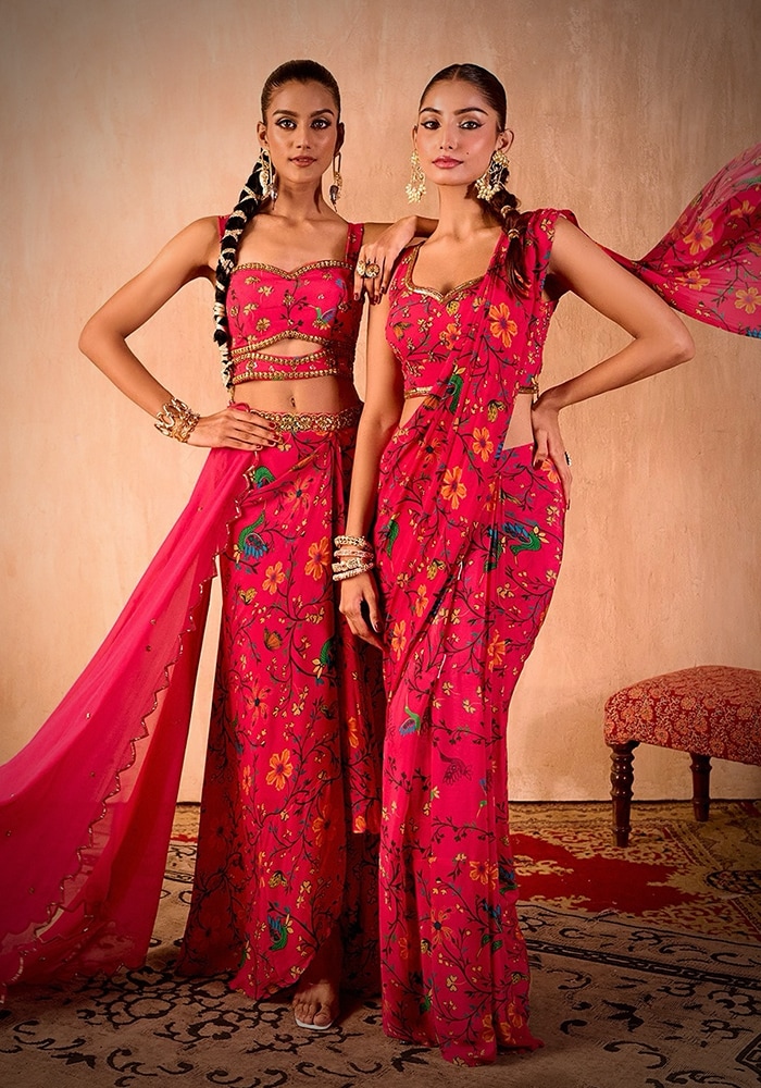Known for her fusion design sensibilities, Mehak Murpana in collaboration with Aza Fashions presents a vibrant and blooming collection inspired by the modern women. Rêverie is a celebration of carefree femininity, crafted in feather-light fabrics and joyful hues. Where delicate floral prints and playful bird prints rejoice the amalgamation of whimsy elegance in timeless designs.