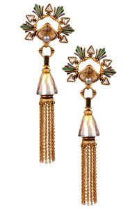 The woman of today has a lot of fusion and formal outfits. What better choice than chic danglers to accentuate those silhouettes? Deepika's striped Loewe pantsuit paired with these contemporary danglers by Varnika Arora are just the inspiration you need. Doesn't it just amp up the whole look? You can opt for similar shoulder-grazing danglers in stones, beads, or metal depending on your outfit.