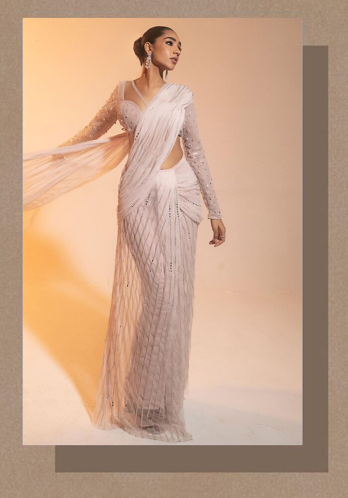 Planning a destination wedding? Saanjh by Lea Diya Hand-Embroidered Pre-Draped Saree is your passport to a luxe wedding. With its intricate hand embroidery and effortless draping, you'll be the talk of the town and the envy of every beach bride.