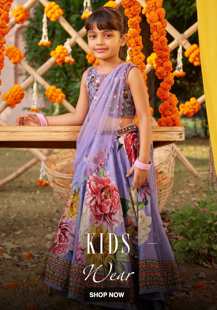 Aza has an equally adorable selection of kids ethnic wear. From a floral lehenga choli for girls to a kurta dhoti set for boys, there are plenty of designer kids wear online that has the best combination of comfort, cuteness, and culture.
