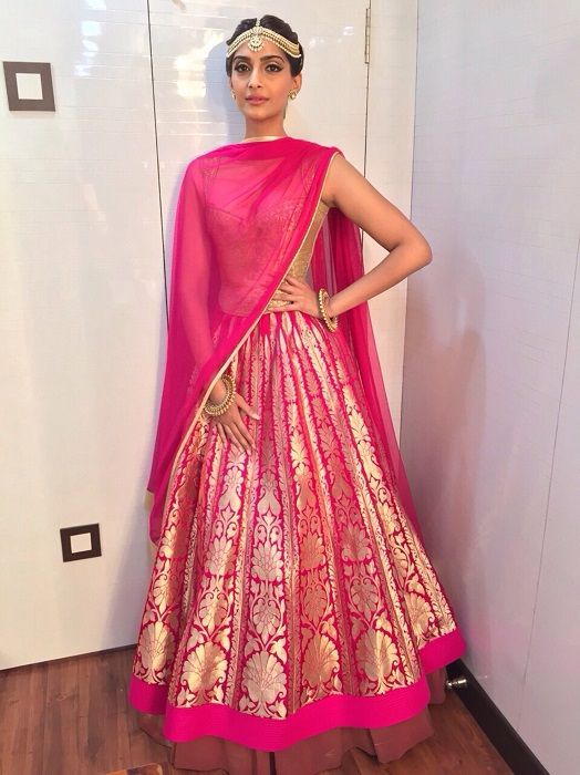 At festive and wedding occasions you would find Sonam Kapoor flaunting lehenga's in the most stunning way. From brocade silks to free flowing chiffons, Sonam has a way to make even traditional outfits look super stylish.