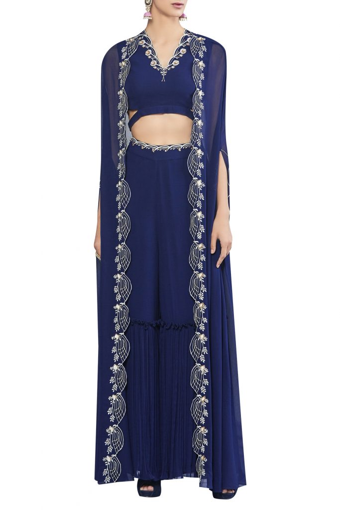 6# Walk in style with this Stunning top teamed with embroidered cape and pleated sharara by Abirr N' Nanki
