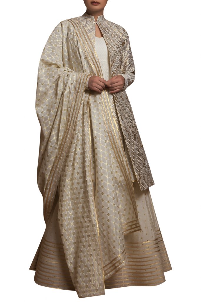 12# Intricately designed long jacket teamed with a lehenga by Ridhi Mehra could be your next showstopper look