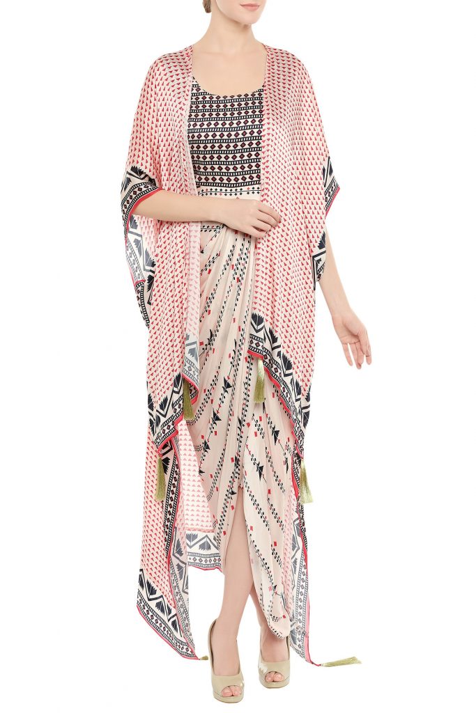 5# This pre-stitched sari with a tassel fringe cape by Dheeru and Nikita will be your next statement outfit