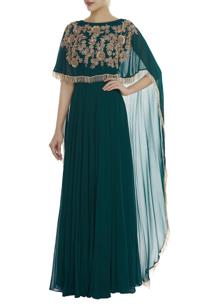 15# Lastly this Layered gown with embroidered cape by Ushma Vaidya is simple yet stylish