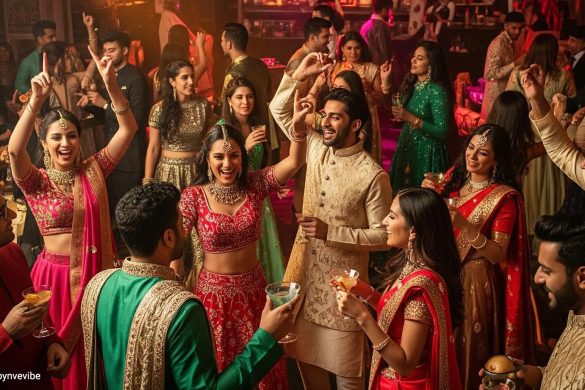 13# A shimmery number by Siddhartha Tytler is perfect for the night out in the city and exudes confidence with the plunge neckline and bootleg pants.