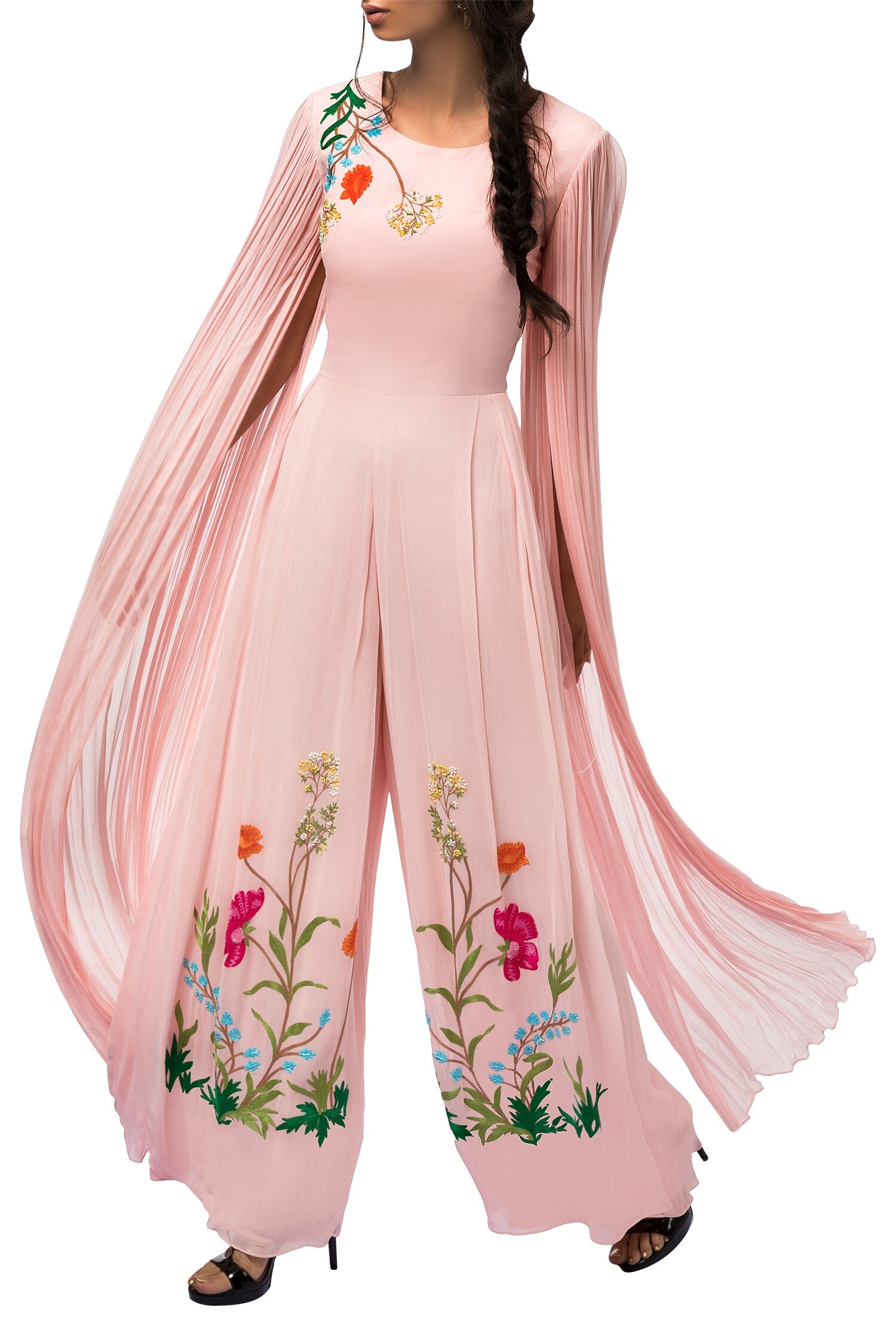 6# Jumpsuits are hassle free trendy pieces and perfect for any time of the day. This sorbet pink embroidered piece by Limerick with cape like sleeves makes for a dreamy look.