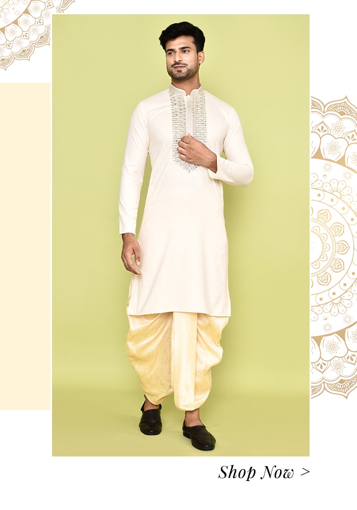 Bearing in mind the redefined fashion realm of menswear, we bring to you a dapper and marvellous selection of kurta sets, tailored especially for the modern man. A Poila Boisakh staple for centuries, men’s kurta paired with dhotis, pajamas, salwar, and churidars not only reflects our cultural heritage but also the rich traditions. They make for the most coveted choice for the day.