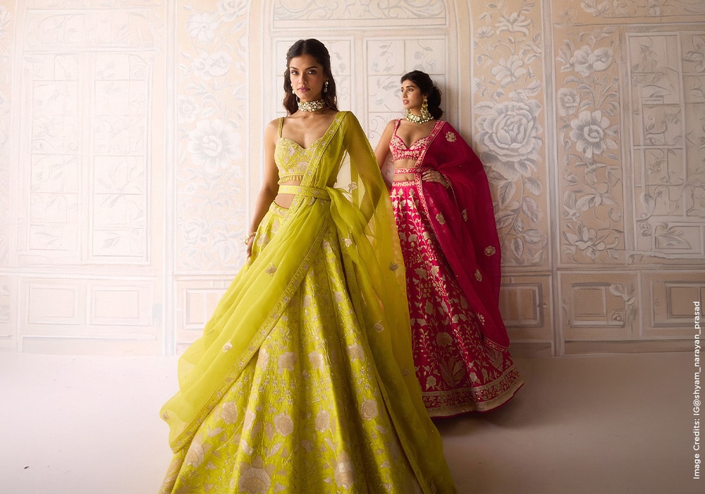 - Sunkissed Summer Weddings: Explore flowy lehengas and lightweight sarees in soft colors, perfect for outdoor or daytime weddings to keep you cool and radiant.
