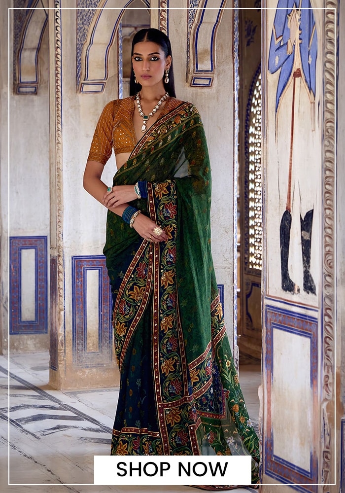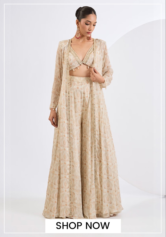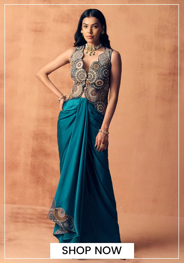- Pre-Draped Perfection: Love the classic look of saris or draped outfits, but want life to be easy? This edit features elegant ready-to-wear options, so you get the best of both worlds.