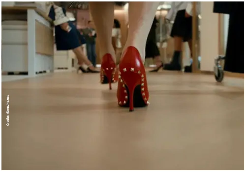 The teaser opens with the sharp, unforgettable sound of designer heels against marble. In a direct and stylish nod to the original film, we see a pair of fierce ruby-red stilettos—identified by eagle-eyed fans as Valentino Rockstuds—making their rhythmic click through a sleek, modern office. The music? The instantly recognizable track, Madonna's "Vogue," setting the tone.