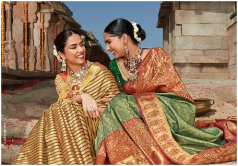 - For Festive Occasions: A silk-cotton Mangalagiri with a broad zari border can be styled for festivals or small family functions. Pair it with traditional gold jewelry to complement the golden zari borders.
