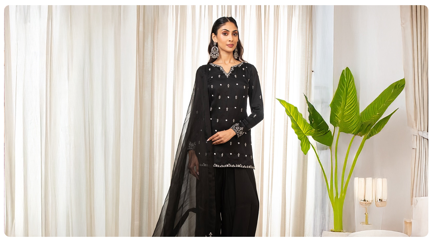 - With Palazzos: Wide pants make the outfit look breezy and chic.